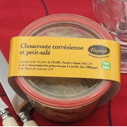 Choucroute corrézienne et petit-saléPot consigné. -1€ au retour. Plat préparé avec viandes et légumes approvisionnés localement. Plats cuisinés artisanalement à Naves. Pas de colorant, pas de nitrites, pas d’exhausteurs ou conservateurs. Seulement du sel. |