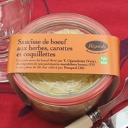 Saucisse de bœuf aux herbes, carottes et coquillettesPot consigné. -1€ au retour. Plat préparé avec viandes et légumes approvisionnés localement. Plats cuisinés artisanalement à Naves. Pas de colorant, pas de nitrites, pas d’exhausteurs ou conservateurs. Seulement du sel. |