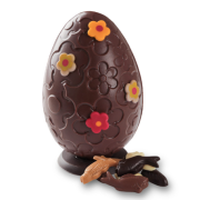Oeuf fleurs chocolat NOIROeuf au chocolat NOIR décoré de fleurs et garni de friture 200gr |