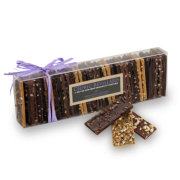 Ardoises des AlpesMélange de feuilles de chocolat noir grué ou sésame, lait noisettes, dulcey sarrasin |