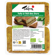 Tofu à l'ail des ours Taifuntofu* 83 % (graines de soja* 55 %, eau, agents de coagulation (chlorure de magnésium, sulfate de calcium)), pesto à l'ail des ours* 7,8 % (ail des ours* 6,1 %, huile de tournesol*, sel marin), huile de tournesol*, bouillon de légumes* (sel marin, extrait de levure*, huile de tournesol*, poireaux*, carottes*, céleri*, macis*, noix de muscade*, persil*), oignons*, jus de citron concentré*, gingembre |