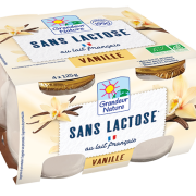 Spécialité laitière délactosée vanille Grandeur NatureRecette sans lactose : elle se compose de lait entier, de ferments lactiques et de lactase. Cette enzyme naturelle détruit le lactose et garantit un produit à moins de 0,1 % de lactose. Fabriqué à partir de lait entier BIO 100 % breton. Ingrédients : lait entier pasteurisé * 89 %, sucre de canne* 6,9 %, lait concentré écrémé *, extrait de vanille*, ferments lactiques . * Ingrédient issu de l'ag |
