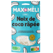 MAX&MELI Noix de coco râpée, Sri LankaNos noix de coco proviennent du Sri Lanka. En poudre, elle est idéale pour la pâtisserie.ngrédients : noix de coco*. * Ingrédient issu de l'agriculture biologique |