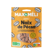 MAX&MELI Noix de pécanAvec son goût proche de celui de la noix du Périgord, elle peut s'inviter dans vos gourmandises sucrées mais aussi dans vos recettes salées.Ingrédients : noix de pécan*. * Ingrédient issu de l'agriculture biologique |