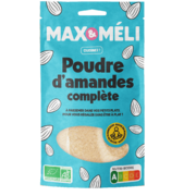 MAX&MELI Poudre d'amande complète, EspagneIngrédients : amandes*. * Ingrédient issu de l'agriculture biologique |