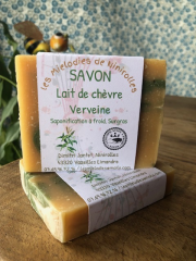 Savon Lait de chèvre VerveineSavon surgras à base d'huile d'olive, de beurre de coco, de beurre de karité, de lait de chèvre, d'argile verte, de verveine séchée et d'huiles essentielles. Saponification à froid, fabriqué à la main |