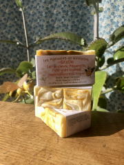 Savon Cire d'abeille et MielSavon surgras à base d'huile d'olive, beurre de coco, beurre de karité, cire d'abeille et miel Saponification à froid, fabriqué à la main |