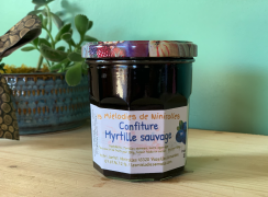 Confiture Myrtille SauvageMyrtilles sauvages ramassées en Haute Loire Sucre de canne bio |