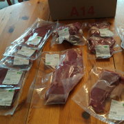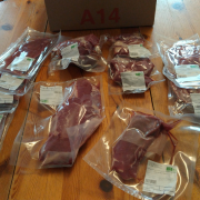 Colis de viande bovine bio 5kg - classiqueColis de viande de génisse bio 5kg. Emballé sous vide. DLC 21 jours. 1/3 de pièces 1er choix (steaks, côtes, rôti). 1/3 de pièces à braiser (bourguignon). 1/3 de pièces à pot au feu (flanchet/jarret). A commander avant le samedi 4 Avril. Livraison le mardi 21 Avril. |
