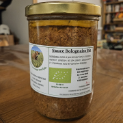 Bolognaise BIO 800 mLIngrédients : viande et gras de bœuf (63%), tomates, oignons, carottes, sel, ail, poivre, bouquet garni |