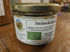 Terrine de boeuf BIOIngrédients : Viande Boeuf (73%), Poitrine de porc (25%), Sel, Poivre |