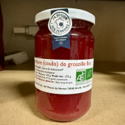 Coulis de groseille bio (AB)Groseilles cultivées et transformées à Gruffy et Bellecombe-en-Bauges. La groseille est un fruit acidulé, vif et peu sucré souvent transformée en confiture, gelée ou coulis pour adoucir son côté acide. Sans conservateurs et peu sucrée (30 g/100 g). Parfait pour accompagner yaourts, fromages blancs, faisselles, panna cotta, etc. À réfrigérer après ouverture. |