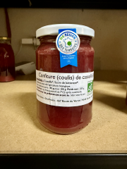 Confiture de Casseille Bio (AB)Casseilles cultivées et transformées à Gruffy et Bellecombe-en-Bauges. Ce fruit rouge, issu du croisement cassis-groseille, offre une douceur équilibrée : moins acide que le cassis et plus parfumé que la groseille. Médaillée de bronze en 2024 lors du Concours International d’Aliments Alpins, cette confiture est sans conservateurs et peu sucrée (45 g/100 g). |