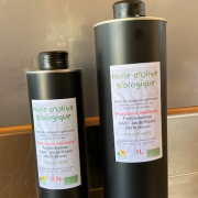 Huile d'olive 1 L « fruité vert » ABHuile d'olive vierge première pression à froid, AB. Typique de l’AOP Haute Provence, notes d’agrumes et artichaut cru, ardence, et herbe fraîchement coupée) |