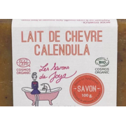savon au lait de chèvre et calendula 100gSavon surgras au lait de chèvre, aux fleurs séchées et macérât huileux de Calendula. Le savon au lait de chèvre est souvent recommandé pour les peaux sensibles, sujettes aux irritations, à l'eczéma ou au psoriasis. Il est reconnu pour ses propriétés apaisantes et sa capacité à réduire les rougeurs et les démangeaisons. Sans huiles essentielles et saponifié à froid. Très doux, il convient partic |
