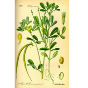 Fenugrec en poudre 60gLa graine dégage une odeur forte, similaire à du caramel ou du Zan. Le terme « odeur de fenugrec » est utilisé en botanique et en mycologie pour qualifier les composantes aromatiques de certains champignons (par exemple les lactaires). La saveur des graines est amère et rappelle le céleri et la noix. |