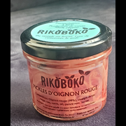 PICKLES D'OIGNON ROUGEComposition : oignon rouge (99%), vinaigre de vin rouge, eau, sucre, sel, poivre noir, laurier. à intégrer dans une salade ou pour remplacer les cornichons. |