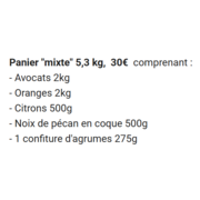 Panier Mixte - Mars 2026- Avocats 2kg - Oranges 2kg - Citrons 500g - Noix de pécan en coque 500g - 1 confiture d'agrumes 275g |