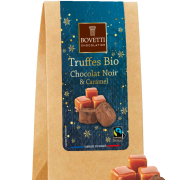 Truffes bio choc.noir et caramel 120gTruffes au coeur fondant de chocolat noir associé à la douceur du caramel et enrobées d'une fine couche d'un puissant cacao en poudre |