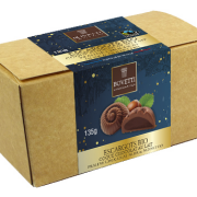 Escargots choc.lait praliné et noisette coque noir bio 135gEscargots crémeux au praliné au chocolat au lait et noisettes, recouverts d'une coque de chocolat noir origine Saint Domingue |