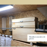 Farine biologique produite à partir d'un moulin à meules de pierre.