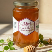 Miel de trèfle et de ronçe bio 500gDoré et délicatement fruité, un miel rond en bouche aux notes de mûre et de fleurs sauvages. |