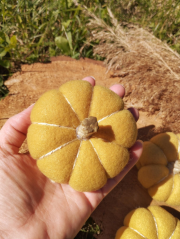 Citrouille décorative Jaune moutardeOptez pour une jolie décoration en tissus pour décorer votre intérieur aux douces couleurs d'Automne. Cette citrouille en polaire et réalisée avec de la laine pailletée / dorée, qui lui donnera de beaux reflets à la lumière d'un bon feu de cheminée. Plusieurs coloris disponibles sur la boutique. Dimension : environ 9cm de diamètre ❤️ Tous mes articles 100% sont faits mains, avec amour, |