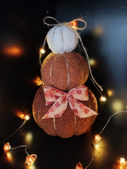Totem de CitrouillesTrilogie de citrouilles cousues main en tissu teddy bouclette et corde de jute Rembourrage en polystyrène Hauteur : environ 30cm / Largeur : environ 15cm |