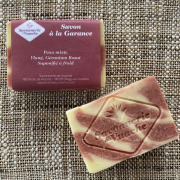 Savon à la Garance – certifié BIOLe Savon à la Garance a un parfum fleuri grâce aux huiles essentielles de Géranium et d’Ylang. Enrichi à l’huile d’amande douce. |