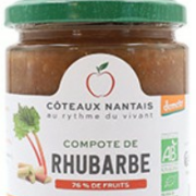 Compote de rhubarbe 315gLa chair acidulée de la rhubarbe surprend et réveille les papilles. La cuisson à l'étouffée lentement en marmite avec juste ce qu'il faut de sucre de canne, lui donne une texture fondante et gourmande. Ingrédients: rhubarbe* (demeter**) (76%), sucre de canne* (demeter**) (24%) *Ingrédient issu de l'agriculture biologique. **Demeter est la marque des produits issus de l'agriculture biodynamique |