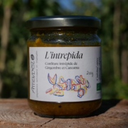 L'Intrepida - Confiture de Gingembre & CurcumaL’intensité et les vertus du gingembre et du curcuma s’allient ici dans une formule salée, avec de l’huile, de l’ail et des graines de tournesol torréfiées. Cette petite tartinade accompagnera vos plats, pique-nique ou apéritifs ! S’allie particulièrement bien avec un fromage frais. |