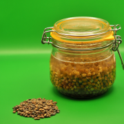 Bocal de Lentilles Beluga cuisinées aux herbes. |
