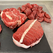 Colis de boeuf Estival2 Faux-filet 1 Rosbeef 2x2 Beefsteak 8 Saucisses 8 Merguez 3x500g de Viande hachée |