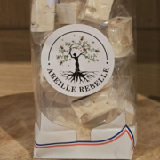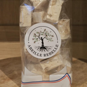 Sachet de Nougat Blanc TendreElaboré avec mon miel, des amandes et noisettes croquantes, des blancs d'œufs montés en neige, ce nougat blanc tendre fond délicieusement en bouche. |