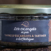 TAPAS D'ESCARGOTS A TARTINER ChataigneTapas D’Escargots À Tartiner Au Beurre Persillé Et À La Châtaigne Limousine AB Ingrédients : Escargots (Hélix Aspersa), Châtaigne, Beurre, Persil, Ail, Échalote, Sel, Poivre. Conseil : Tartiner Sur Un Morceau De Pain De Campagne Puis Passer Au Four Quelques Minutes. Servir Tiède. |
