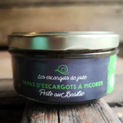 TAPAS D'ESCARGOTS A PICORER Au Pesto De BasilicTapas D’Escargots À Picorer Au Pesto Basilic AB Ingrédients : Escargots (Helix Aspersa), Huile D’Olive, Fromage De Vache Locale, Basilic, Tomates Séchées, Noisettes, Ail, Sel, Poivre. Conseil : À Servir Froid À L’Apéritif Ou Chaud Sur Des Pattes. |