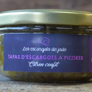 TAPAS D'ESCARGOTS A PICORER Au Citron ConfitTapas D’Escargots À Picorer Au Citron Confit AB Ingrédients : Escargots (Helix Aspersa), Citron, Oignon, Romarin, Sel, Poivre. Conseil : À Servir Froid À L’Apéritif. |