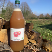 jus de pommejus de pomme bio produit et mis en bouteille à Samois sur Seine. |