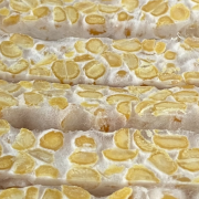 Tempeh de pois cassésProduit fermenté et vivant à base de pois cassés et du champignon (rhizopus). Aliment riche en nutriments, source de protéines et de fibres. 100% végétal, bio & sans gluten; |