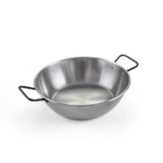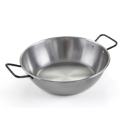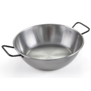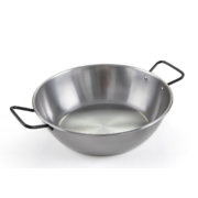 Poêle à frire à anses 4-5 personnesPoêle à frire à anses : pour les oeufs, les poissons, les galettes, les viandes… Aucun revêtement, Acier et 2% carbon. Noircissent avec les utilisations (le culottage). Cuisson saisie pour frire, rissoler, griller, toaster, faire revenir, caraméliser. Vont sur tous les feux, 10 minutes maximum au four. Livret d'utilisation fourni. |