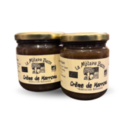 Crème de marrons - BIO - 250gD'une belle couleur brillante, pas trop sucrée, sa texture(petits morceaux) rappelle le goût des marrons glacés et la confiture de nos grand-mères. Elle peut se déguster à la cuillère, sur une tartine de pain, en accompagnement de crêpes, yaourt ,fromage blanc, chantilly, glace à la vanille, en gâteau... A conserver au réfrigérateur 15 jours à 3 semaines après ouverture. |