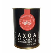 Axoa de Confit de Canard Piment d'Espelette 800G Saveurs du MoulinMagret de canard confit 40%, poivrons rouge, poivrons vert, oignons, tomates concassées, piment d’Espelette, bouillon ( eau, oignons, carottes, tomate, poireaux, céleri, carcasses canard, bouquet garni, se, poivre ) |