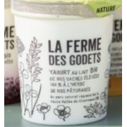 Yaourt nature bio de la Laiterie Godets (125cl)Laiterie des Godets située à Lévis-St-Nom. Lait de vache de type Normande, Jersiaise et Angus. Vaches au pré toute l'année. |